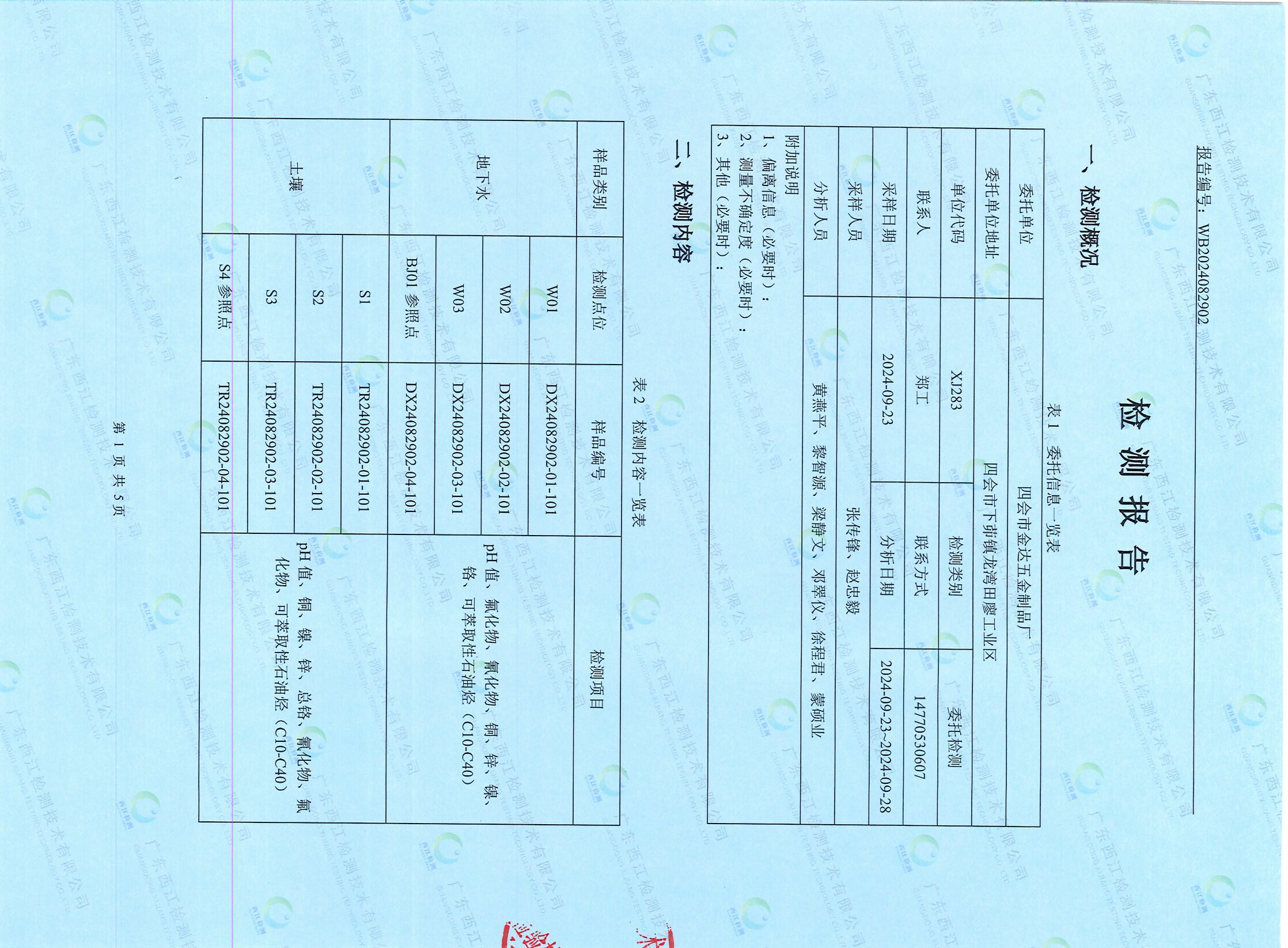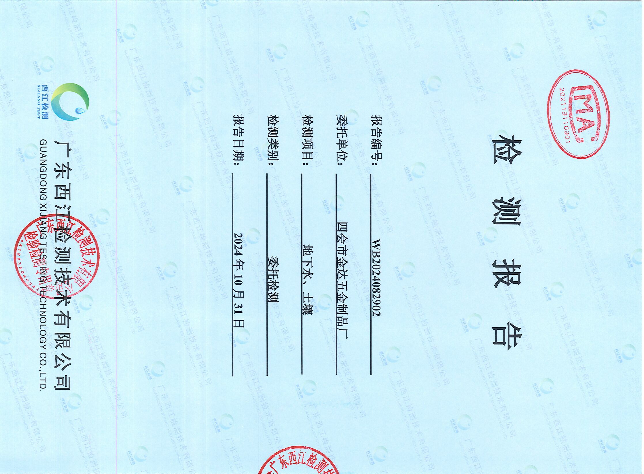 四會(huì)市金達(dá)五金制品廠地下水、土壤檢測(cè)報(bào)告