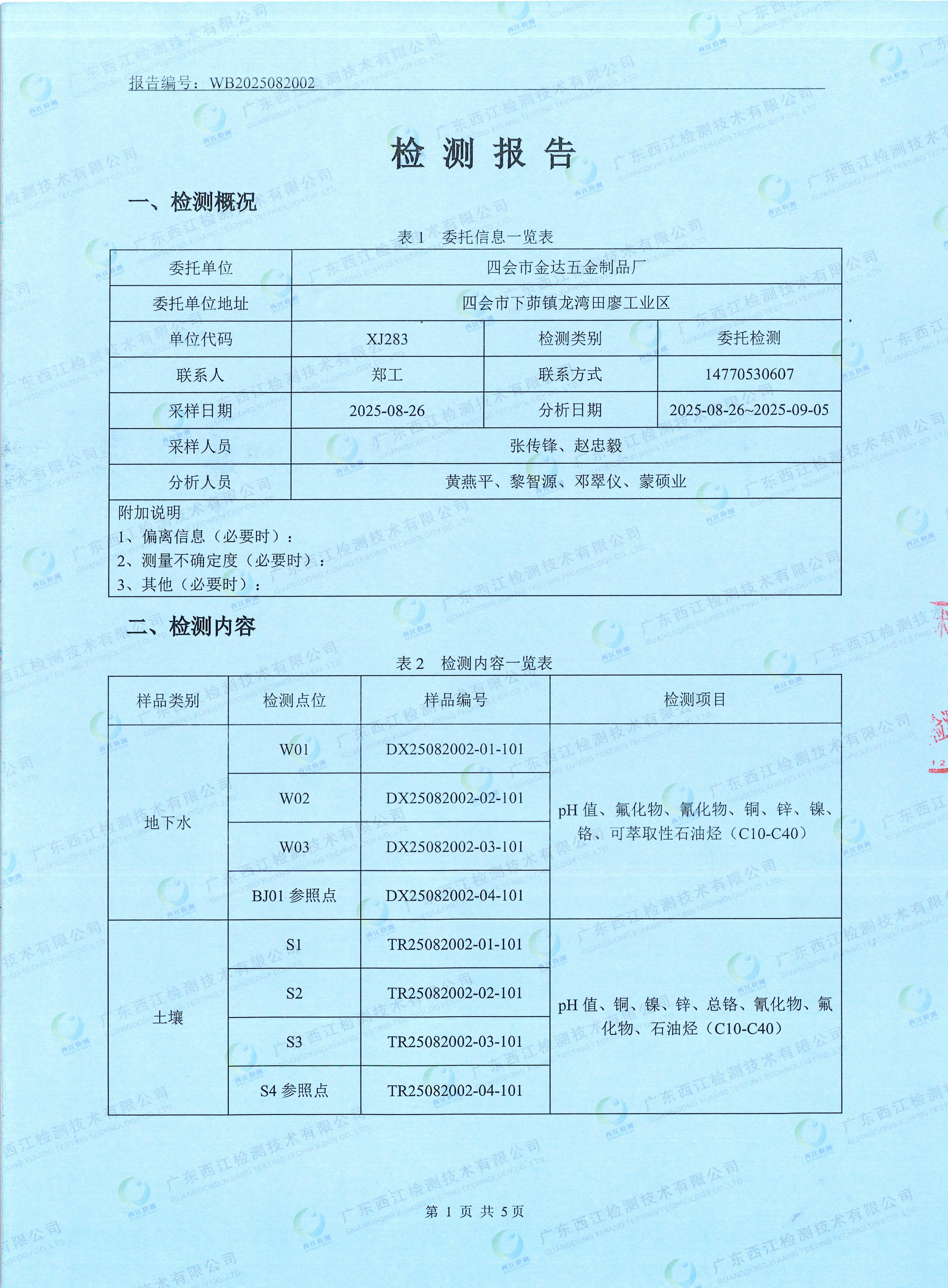 2025四會市金達(dá)五金制品廠地下水、土壤檢測報告